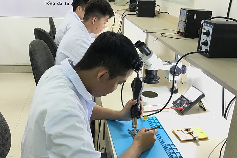 100% kỹ thuật viên của chúng tôi đều được tuyển chọn rất kỹ, toàn là những chuyên gia lâu năm trong lĩnh vực sửa chữa thay thế linh kiện điện thoại di động. Khách hàng hoàn toàn có quyền an tâm khi trao phó dế yêu cho các chuyên gia của chúng tôi.